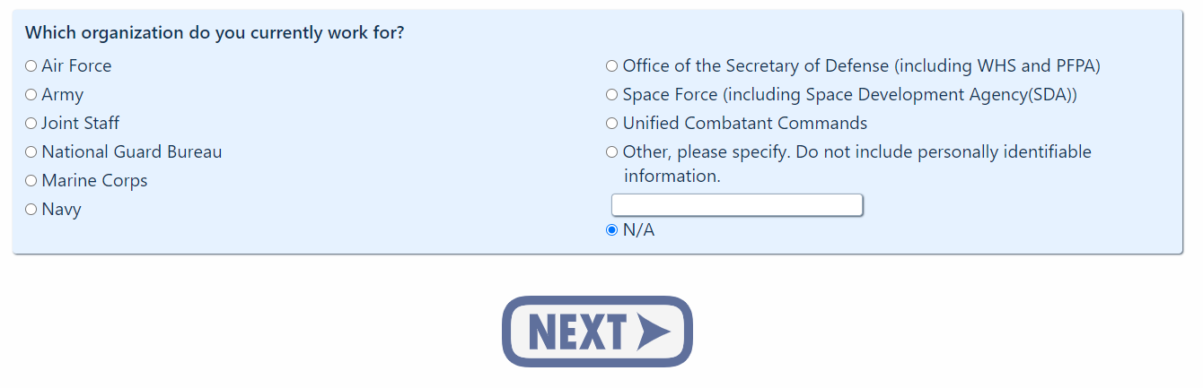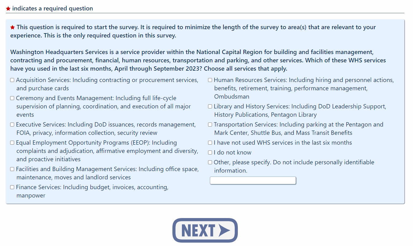 ONLINE SURVEY LINK: https://ice.disa.mil/svy.cfm?WHSCustomer