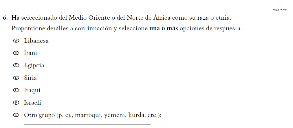 This Item was dropped and replaced with an updated Item (VR862573) that adheres to OMB updated Statistical Policy Directive No. 15.