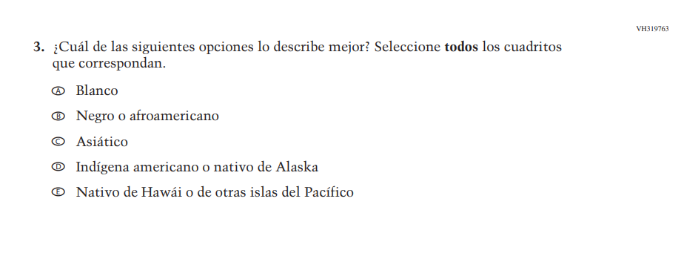This Item was dropped and folded into the following suite of updated Race/ Ethnicity Items.