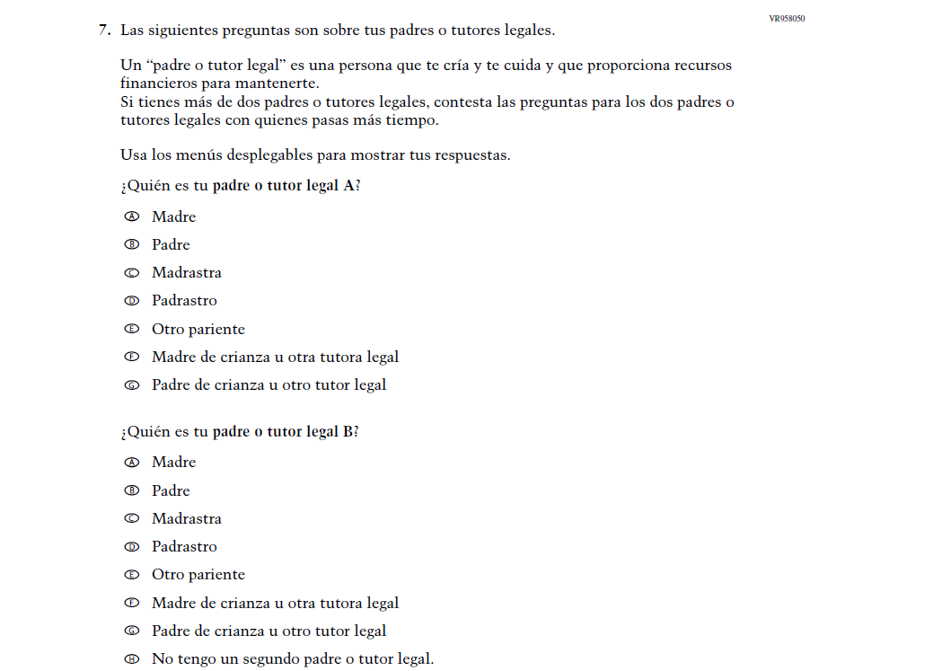 Important changes in how we collect demographic information are reflected in the 2026 instruments that are ready for publication and review. In March 2024, the Office of Management and Budget (OMB) announced revisions to Statistical Policy Directive No. 15: Standards for Maintaining, Collecting, and Presenting Federal Data on Race and Ethnicity (SPD 15) and published the revised SPD15 standard in the Federal Register (89 FR 22182). See Part A.7 of this package to see how NCES plans to incorporate these revisions into NAEP 2026.