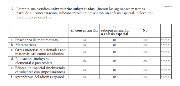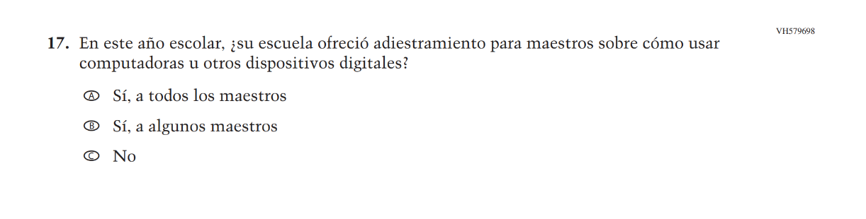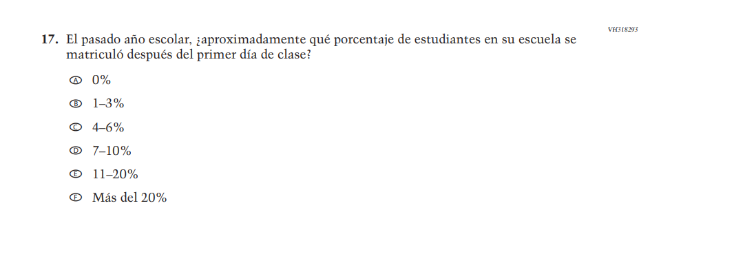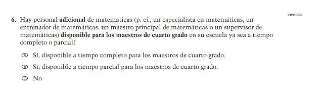 We revised “por ejemplo” to “p.ej.” to be consistent with the phrasing used elsewhere in Teacher and School Items.