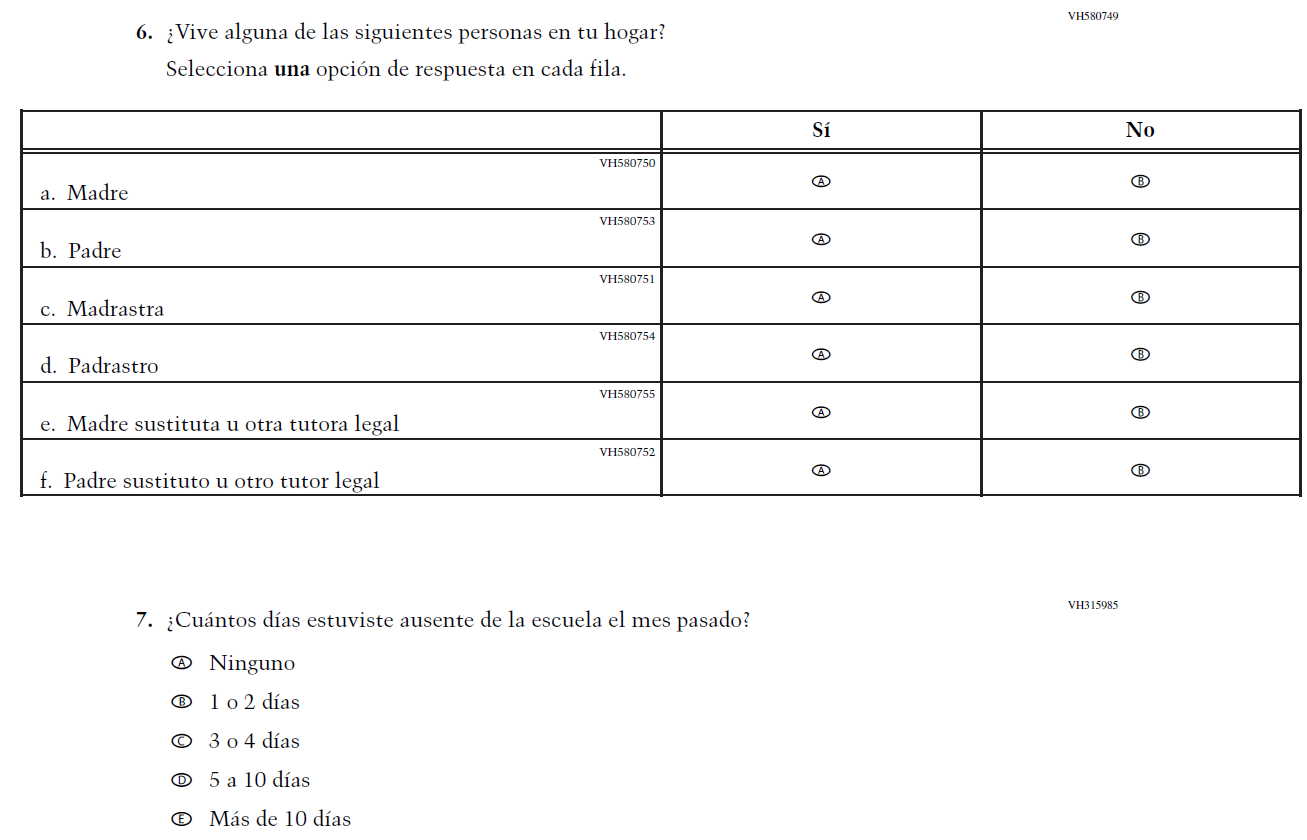Appendix J-1-s: Spanish Translations of Student Questionnaires 6