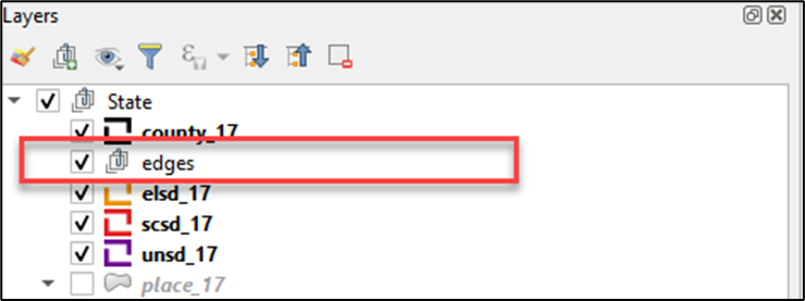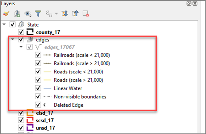To manage visibility of individual groups or layers, check the checkbox next to a layer to make the layer visible (e.g., turn the layer on) in the Map View. Uncheck the checkbox (e.g., turn the layer off) next to a layer to make the layer invisible in the Map View. This may prove beneficial if the Map View is cluttered with too many data layers.