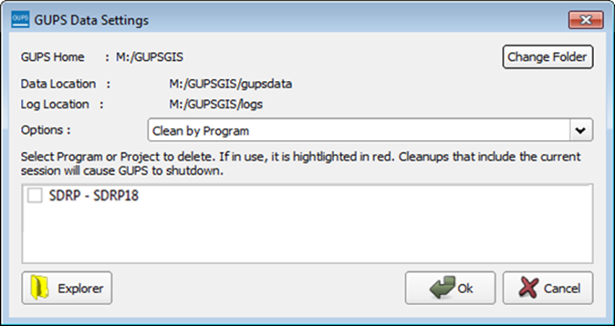 The GUPS Data Settings tool (Figure 39) offers three clean data options: Clean by Project, Clean by Program, and Clean All GUPS Data.