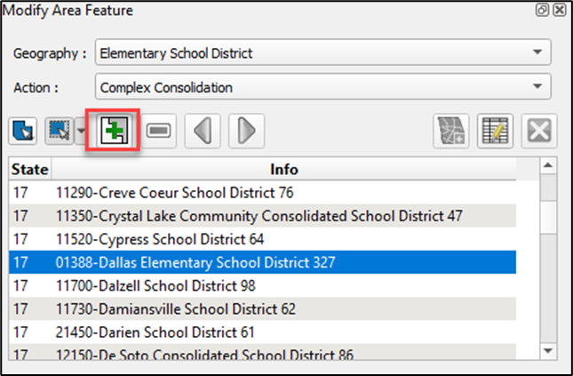 Table 9: Modify Area Feature Tool Buttons and Their Function/Description 30