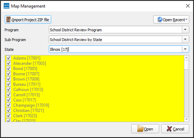 Imported shapefiles are added to the project folder located in the GUPSGIS home directory. The GUPSGIS home directory is typically located in the My Documents folder. These imported shapefiles will be included as part of the Zip file created using the Share with Another Participant export (see sub-section 5.5.1; however, imported shapefiles will not be included when exporting a file for submission to the Census Bureau. |