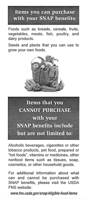 Here is a flyer that someone can get from a SNAP office. [POINT TO “EBT CARD” SECTION] Please take a few minutes to read this section and then we will talk about it. If necessary: Please remember to think aloud as you read.