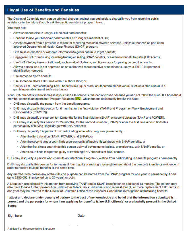 Now please take a few minutes to read this section which is part of the application for benefits in D.C.