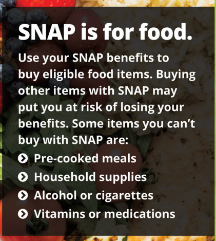 [POINT TO “SNAP IS FOR FOOD” SECTION]