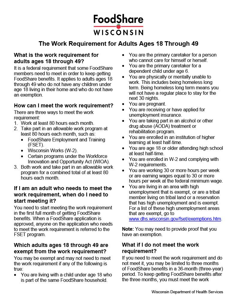 [POINT TO OR HIGHLIGHT FIRST PARAGRAPH UNDER “What is the FoodShare work requirement?” What does this first paragraph mean to you?