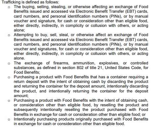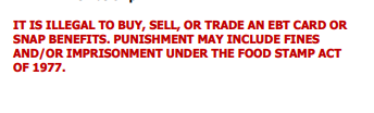 What does it mean to buy, sell, or trade an EBT card?