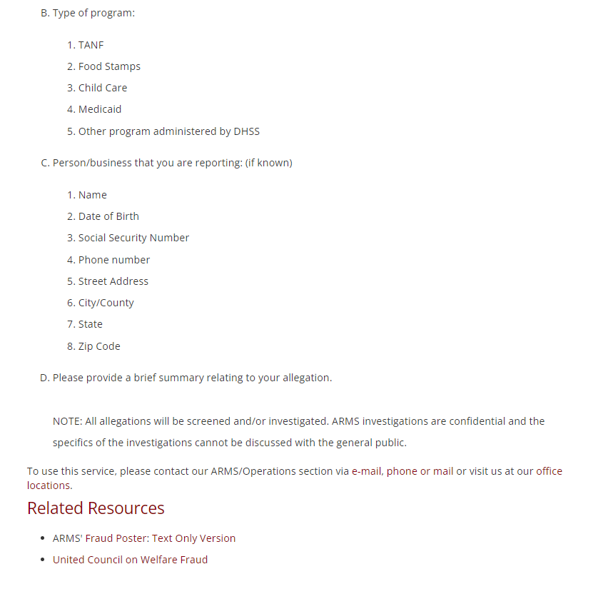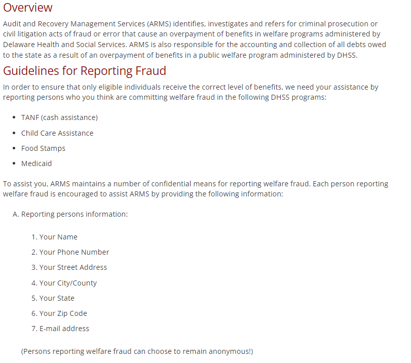 [NOTE WHETHER P ATTENDS TO SENTENCE “(Persons reporting welfare fraud can choose to remain anonymous)”]