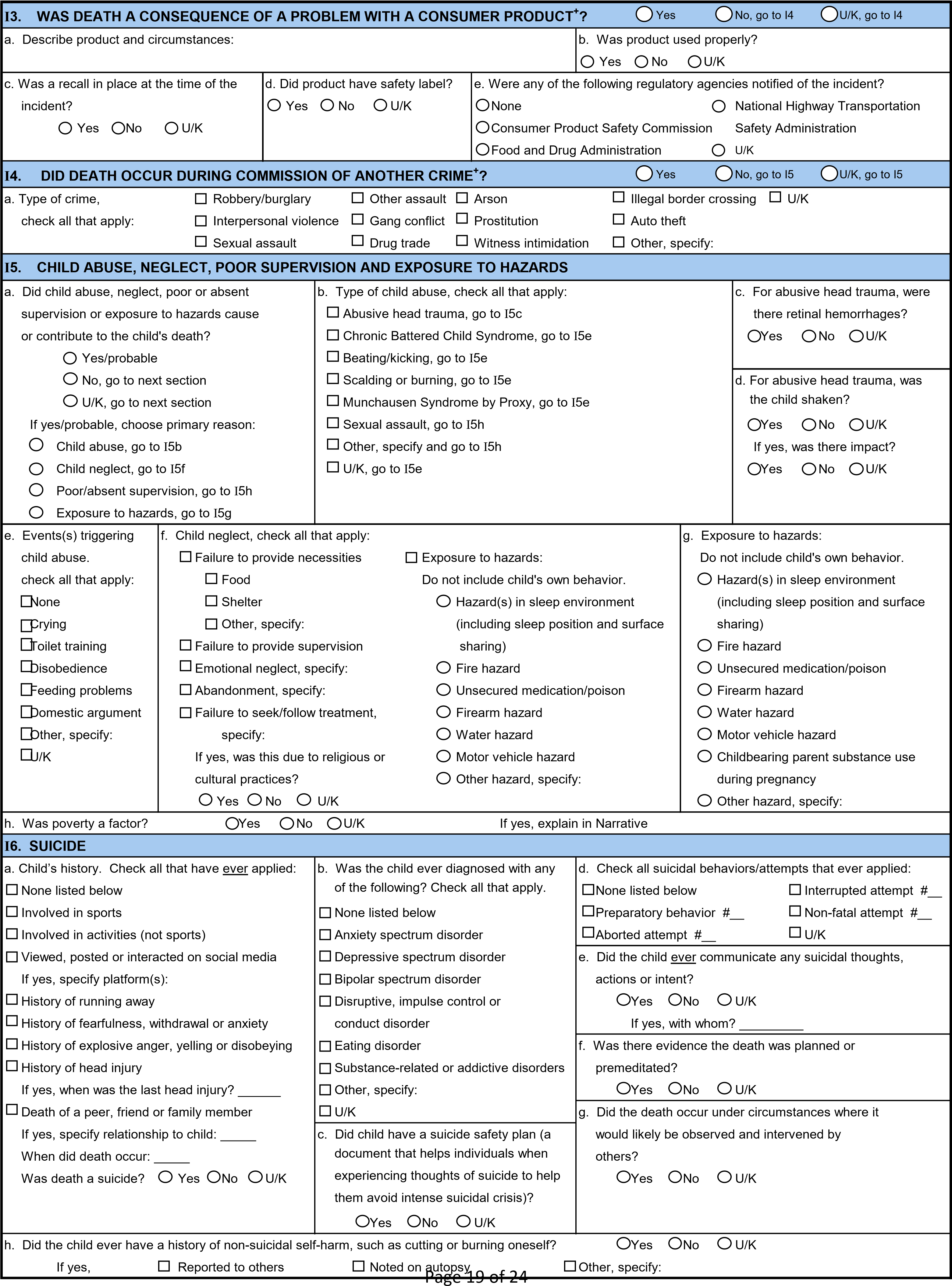 Yes, go to I2a No, go to I2tU/K, go to I2a WAS DEATH RELATED TO SLEEPING OR THE SLEEP ENVIRONMENT+? |