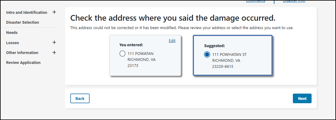 This may be your home address, where your vehicle was damaged, where you sustained an injury from the disaster, or where your loved one passed away from the disaster. To get assistance, your damaged property or where the loss occurred must be in a declared disaster area.