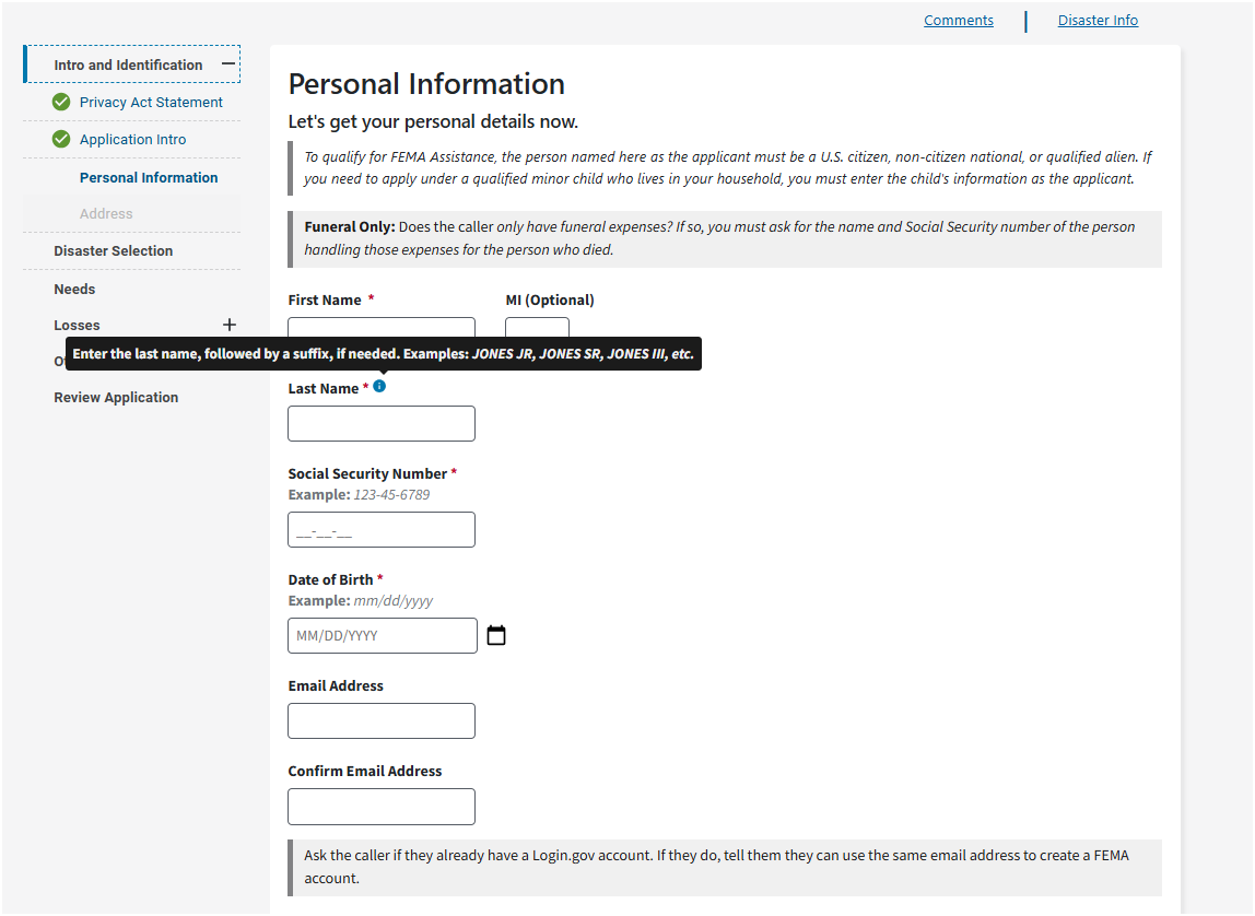 It's important you understand that your application becomes a legal document. FEMA may use external sources to verify the accuracy of the information you provided.