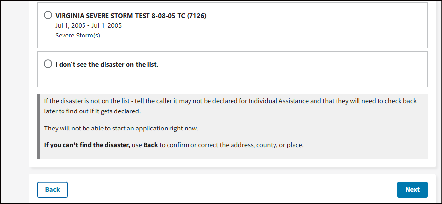 You are applying for VA SEVERE STORM that occurred 09/07/2022 - Present Time.