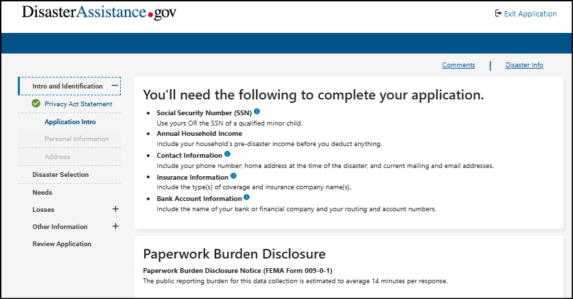 It's important you understand that your application becomes a legal document. FEMA may use external sources to verify the accuracy of the information you provided.