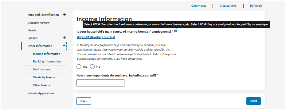 FEMA Form FF-104-F Disaster Registration Intake Call Center Updates