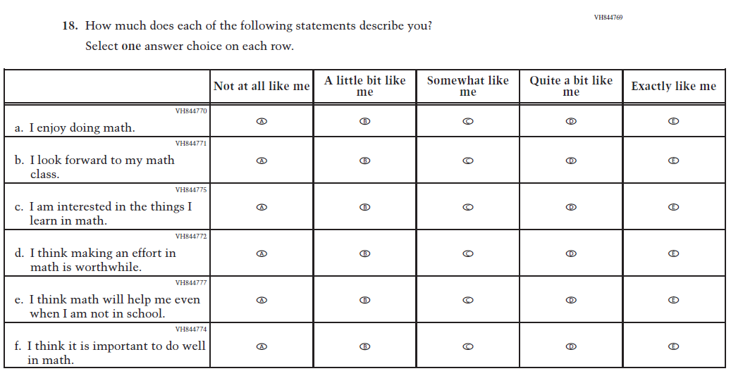 This Item was added to understand students’ experiences with using their devices to take the assessment. |