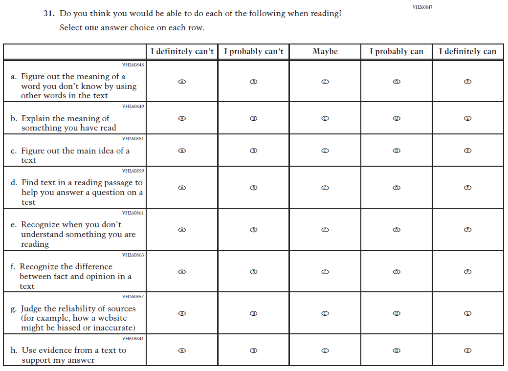 Learning Recovery Items were dropped from the 2026 NAEP Assessment. |