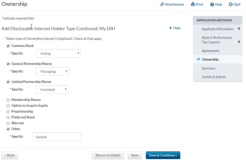 Applicant answers ‘yes’ to the question that asks whether the applicant has provided service for at least two years and answers ‘no’ to the question that asks whether the applicant has operated only an electric transmission or distribution network