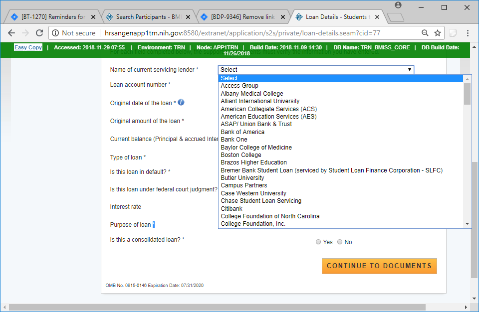 If the loan is a consolidated loan then instructions for required documentation is displayed and a drop down for the number of loans that were consolidated.