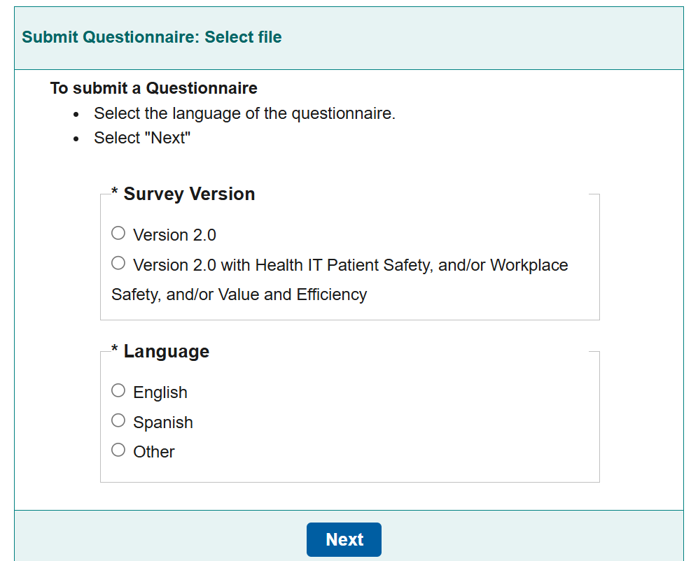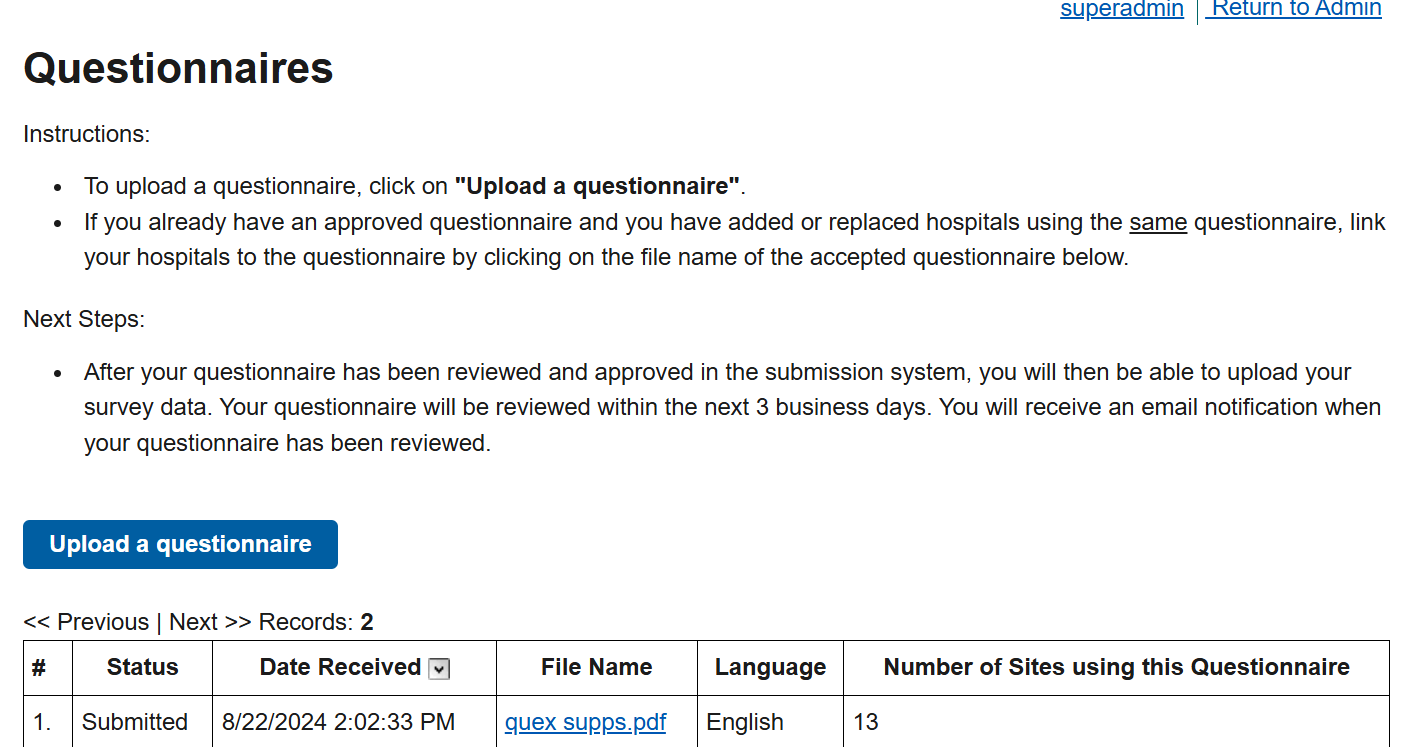 Figure 1: Submit Questionnaire and Link Questionnaire to Hospital(s), continued