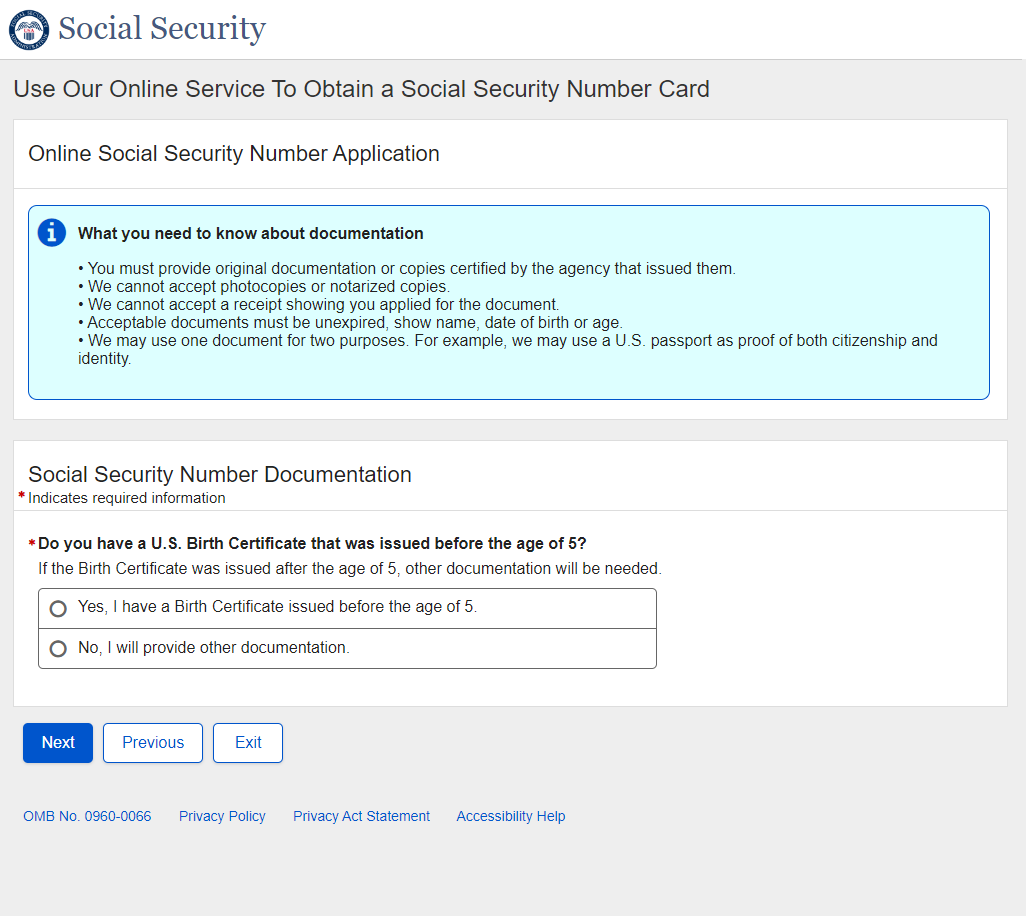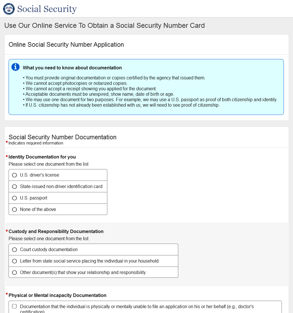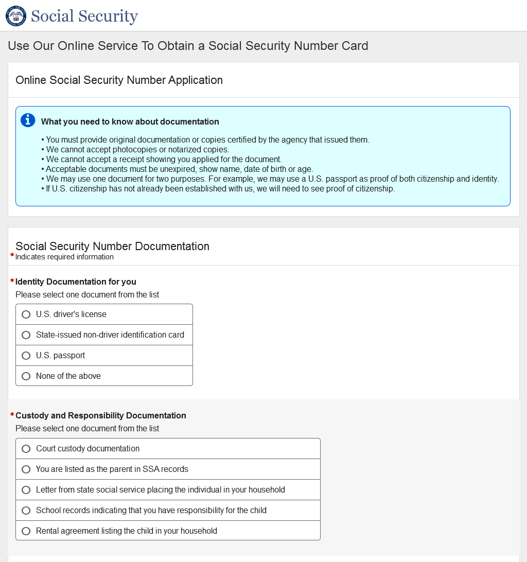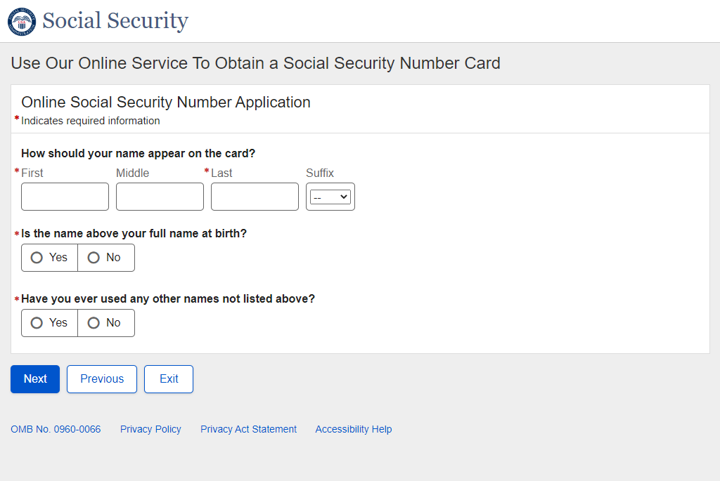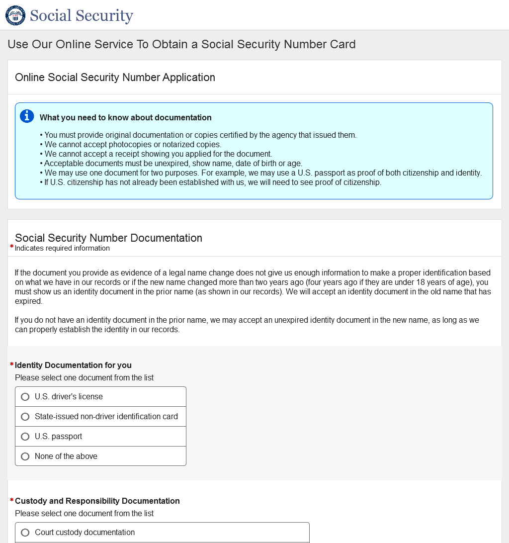 Application for a Social Security Card