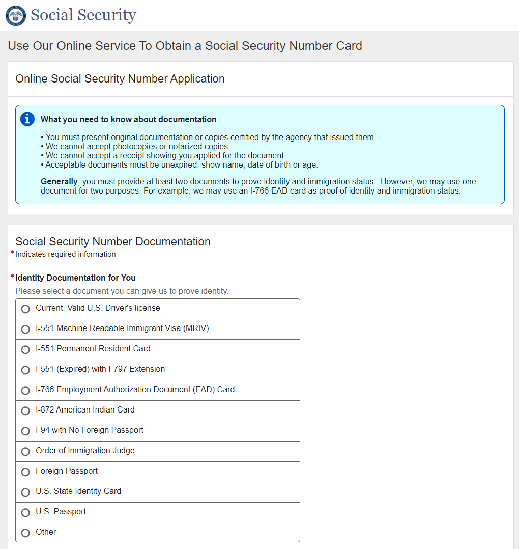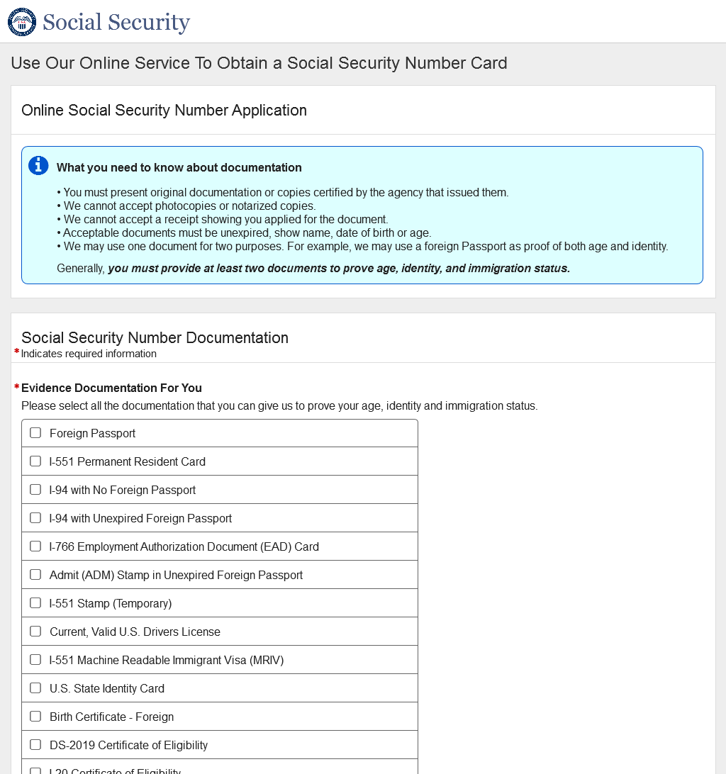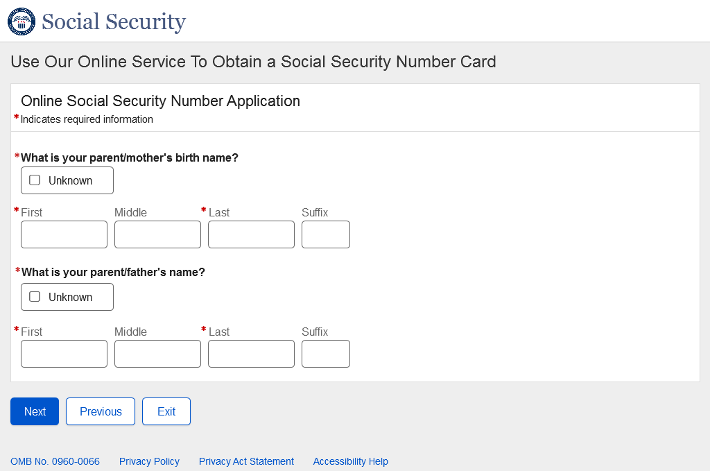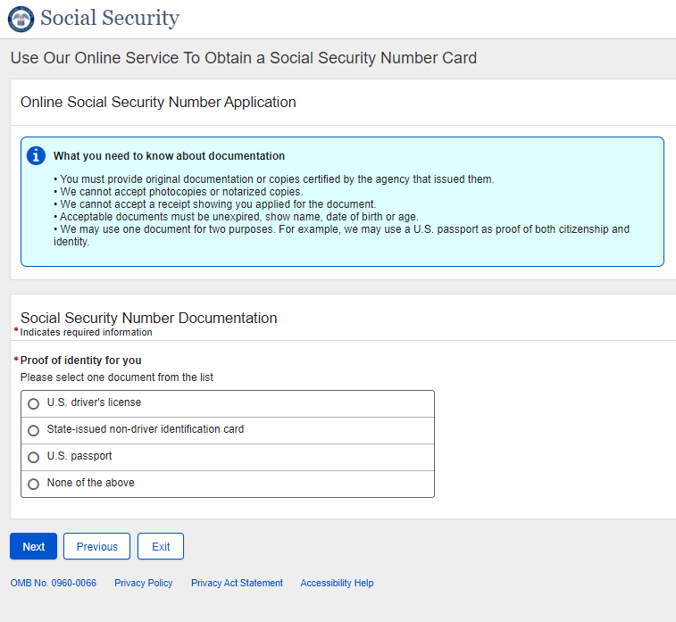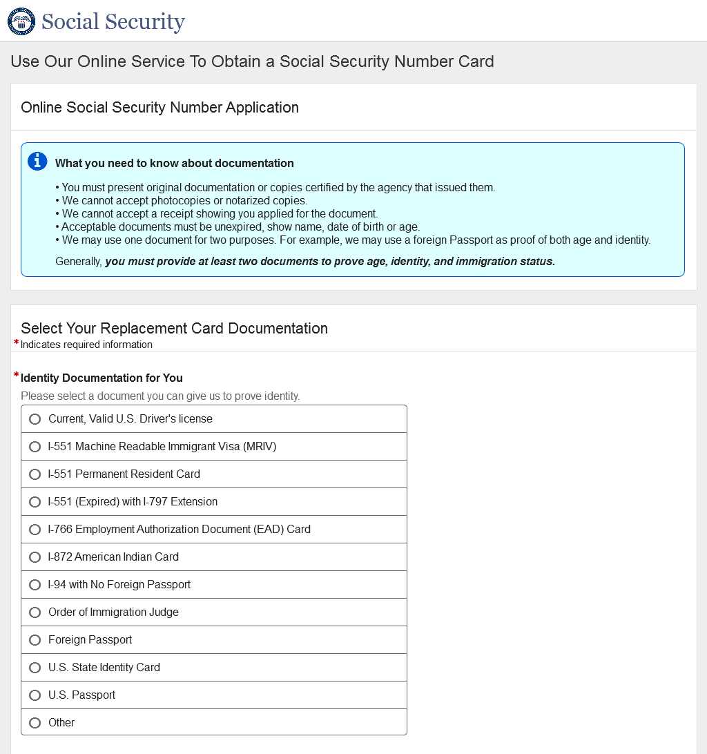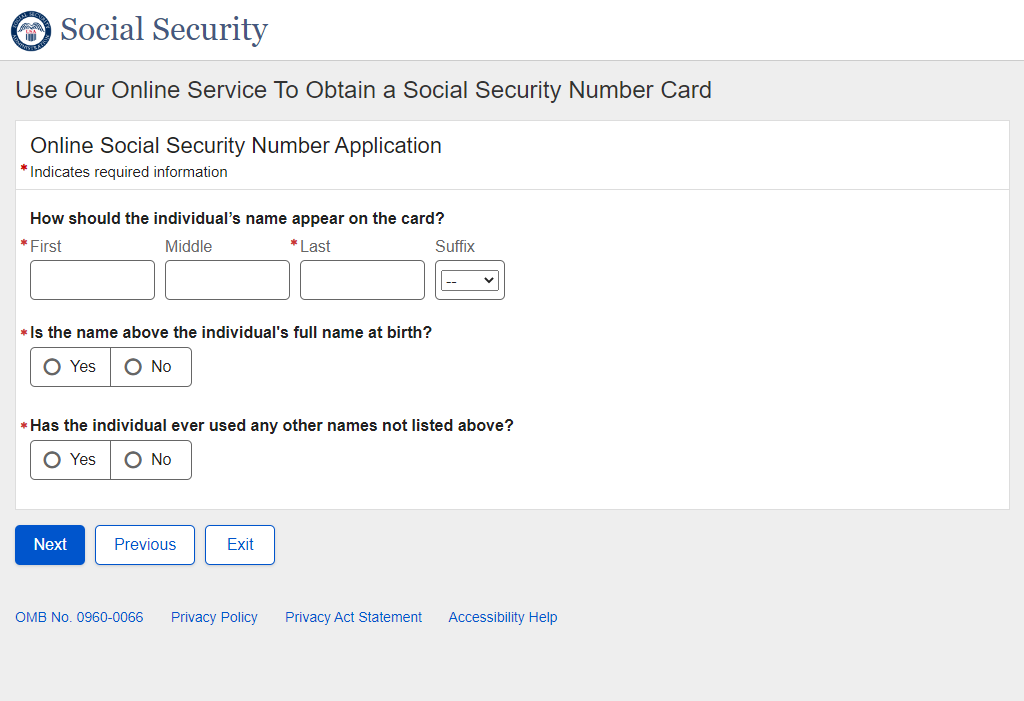 Application for a Social Security Card