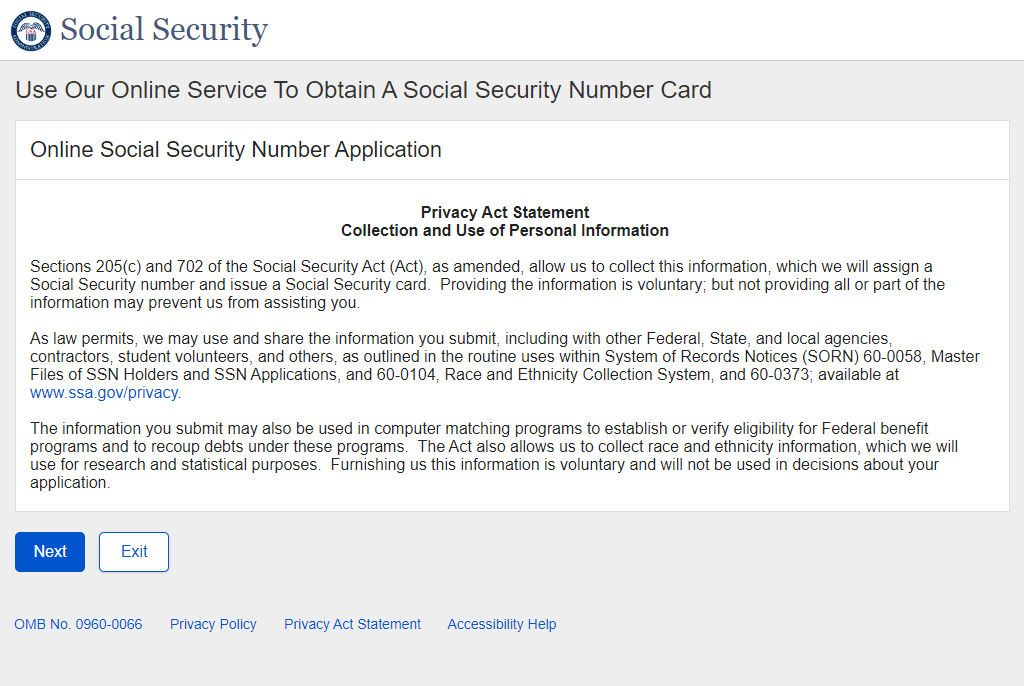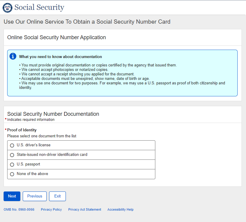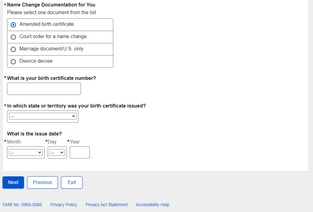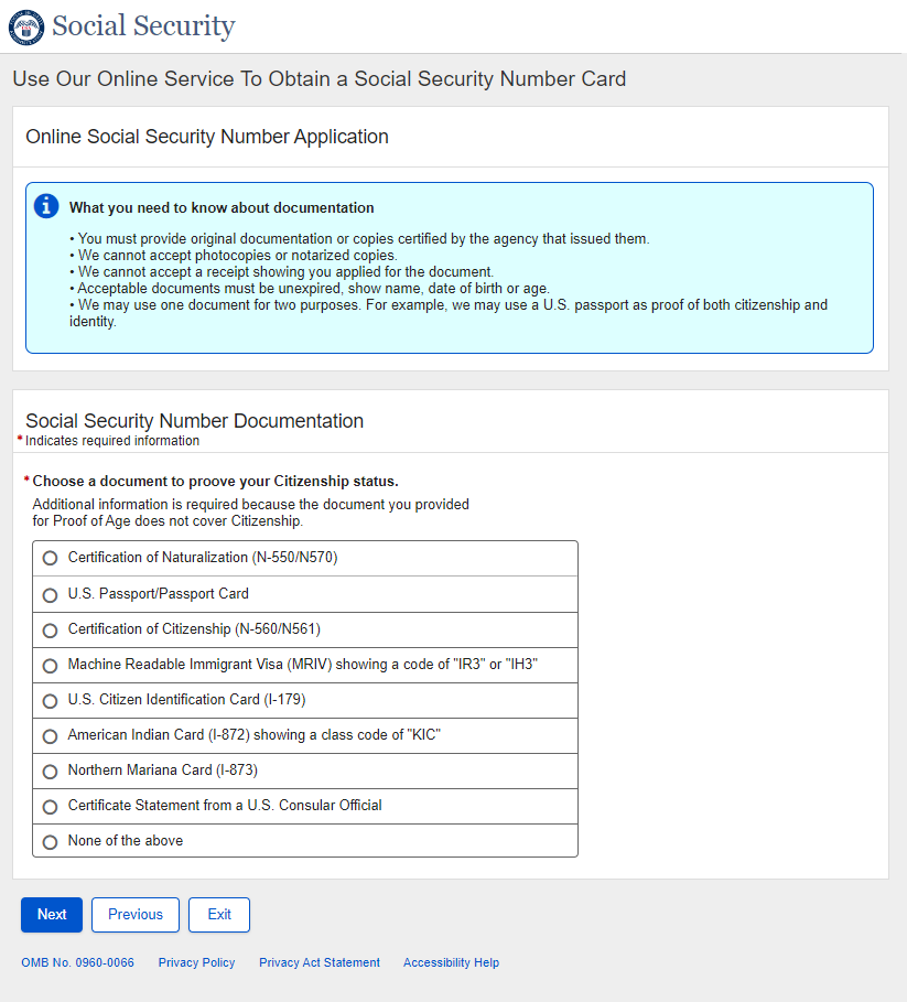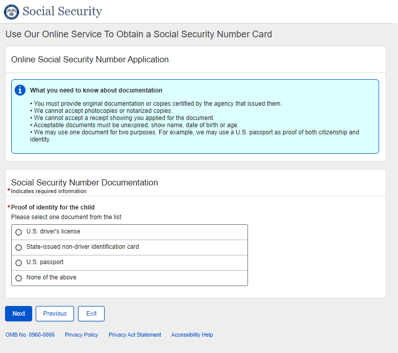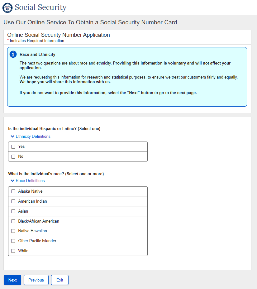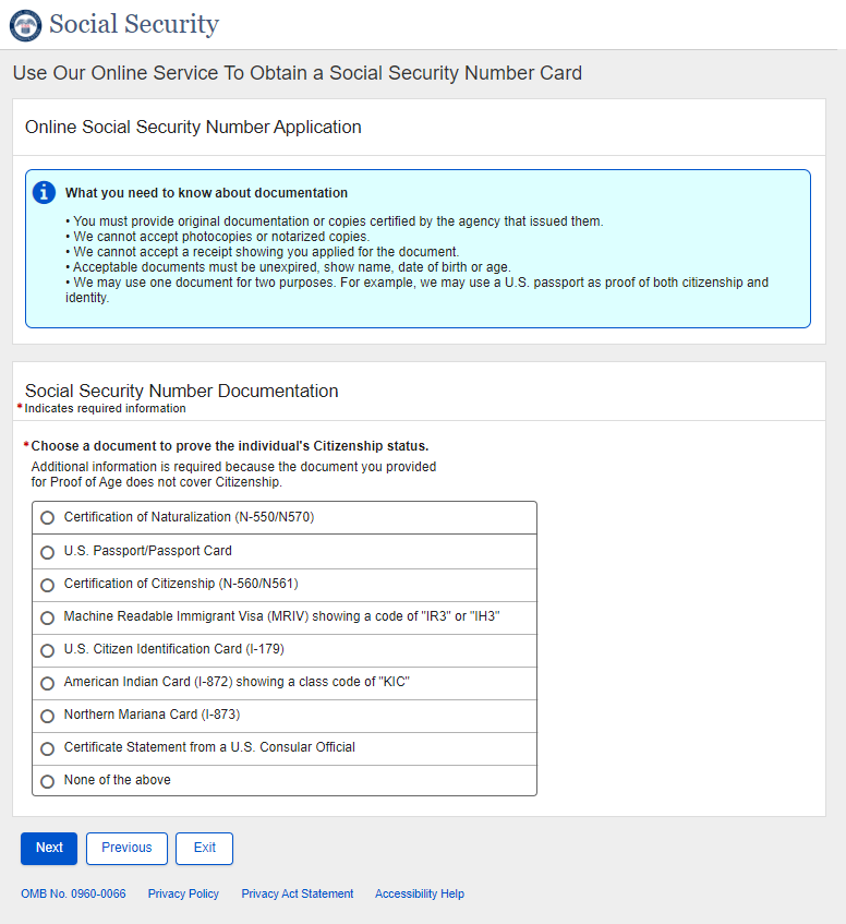 Application for a Social Security Card