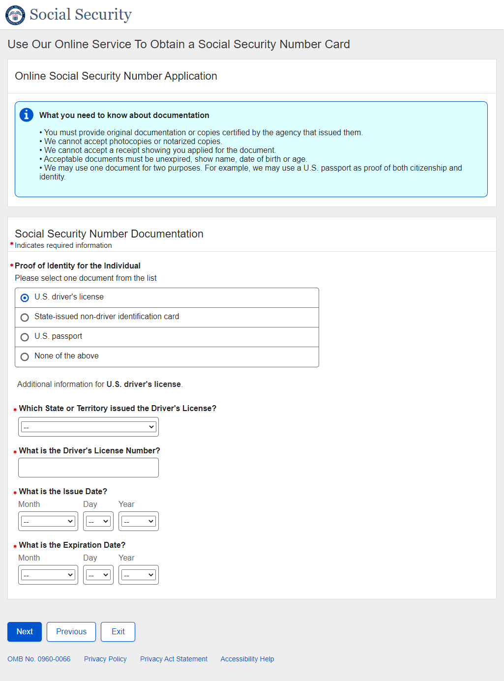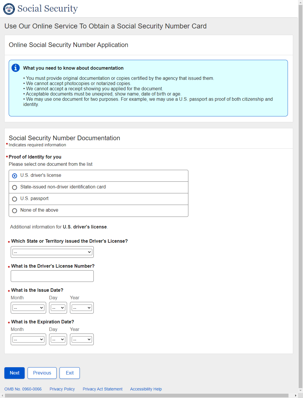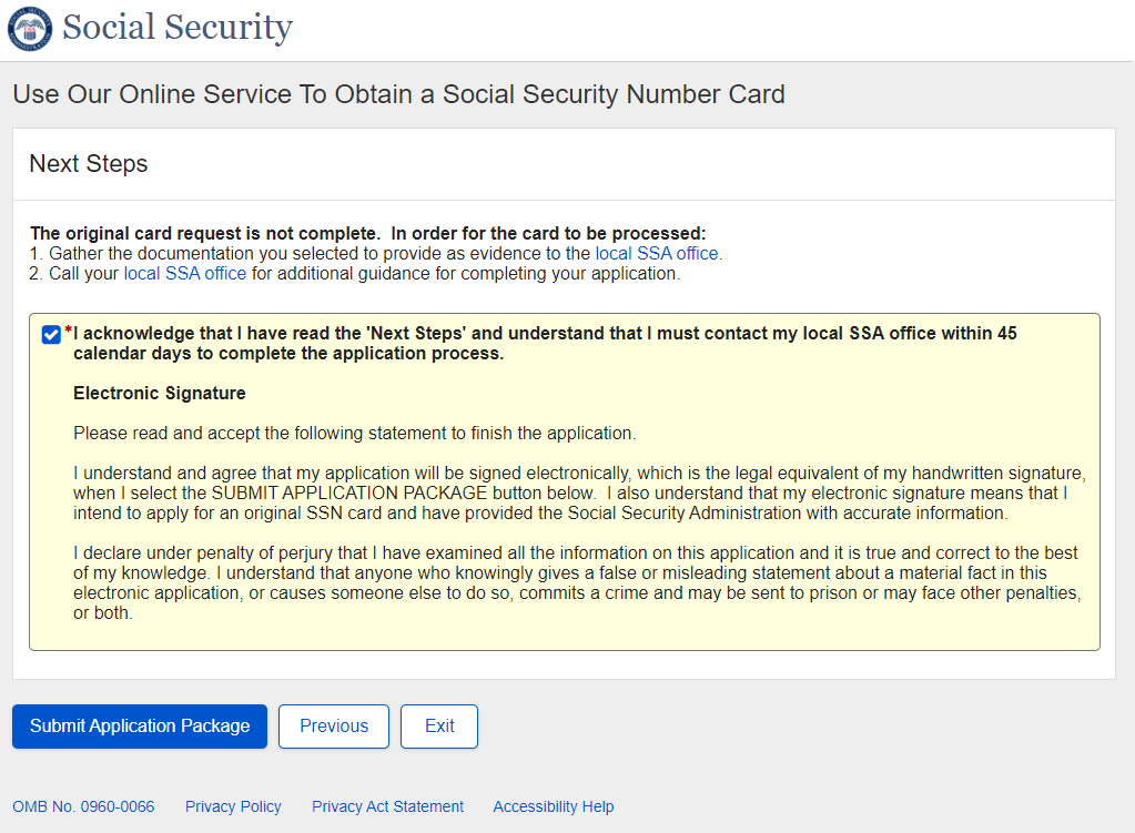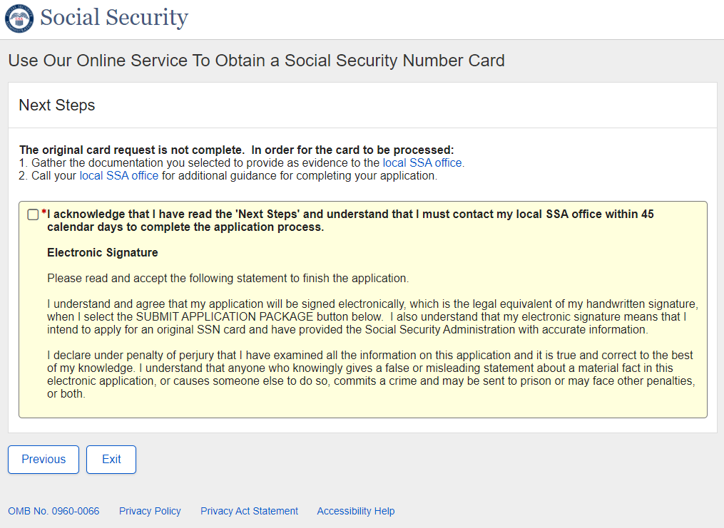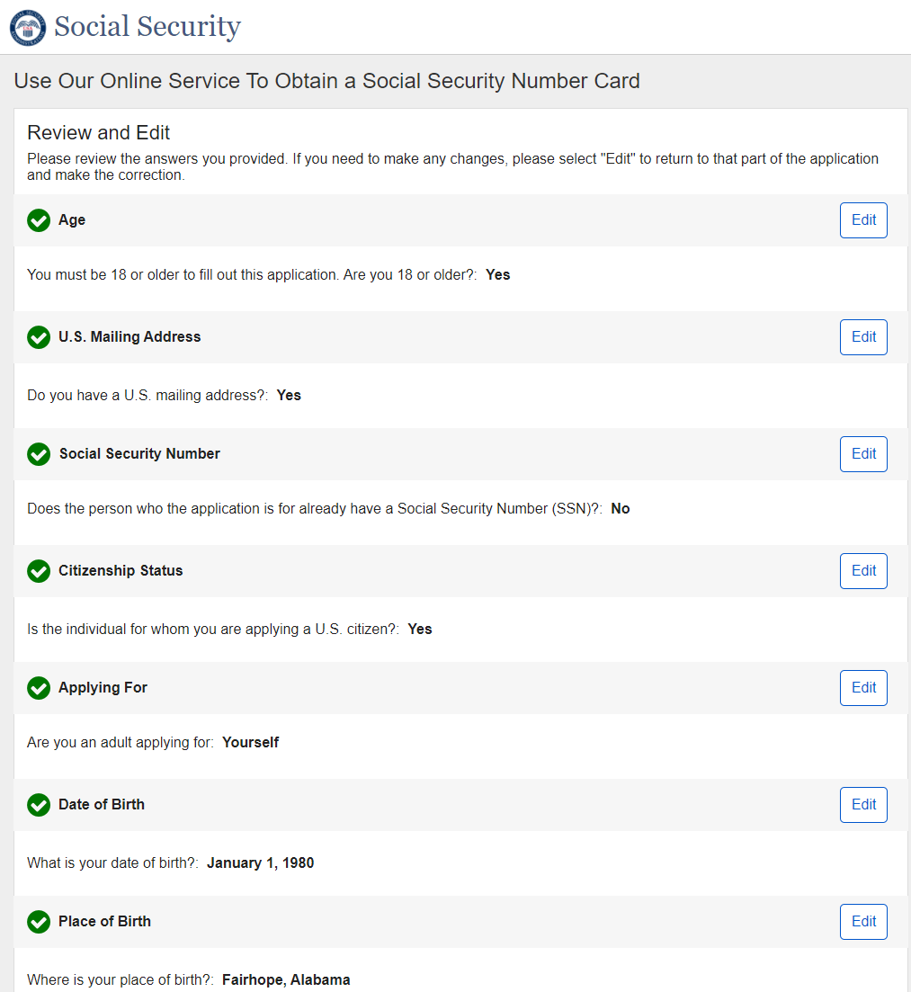 Application for a Social Security Card