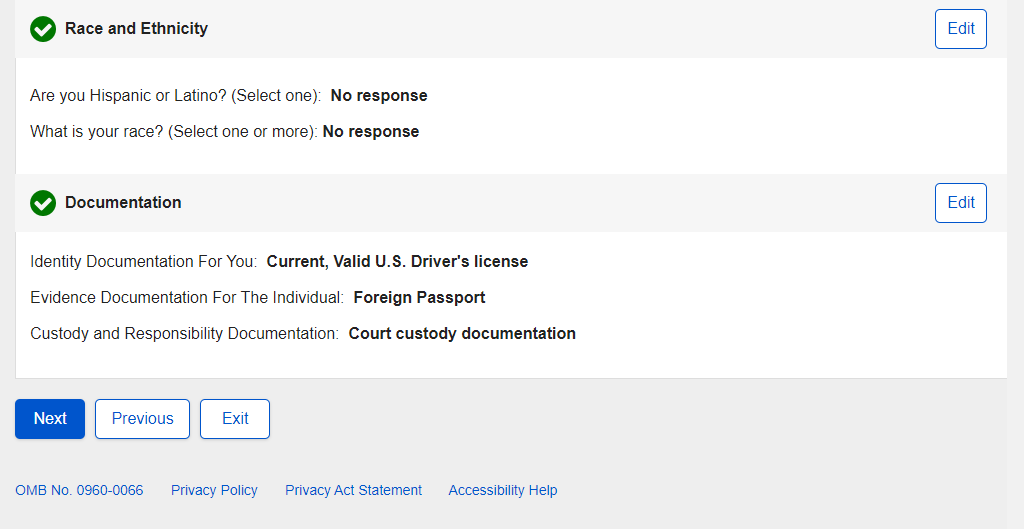 Non-U.S. Replacement Someone Else Child - Review and Edit - Continued