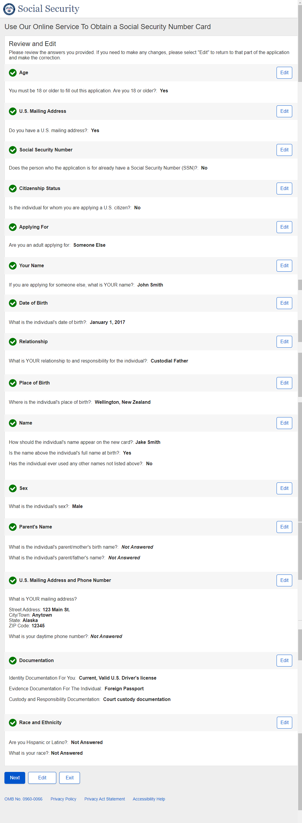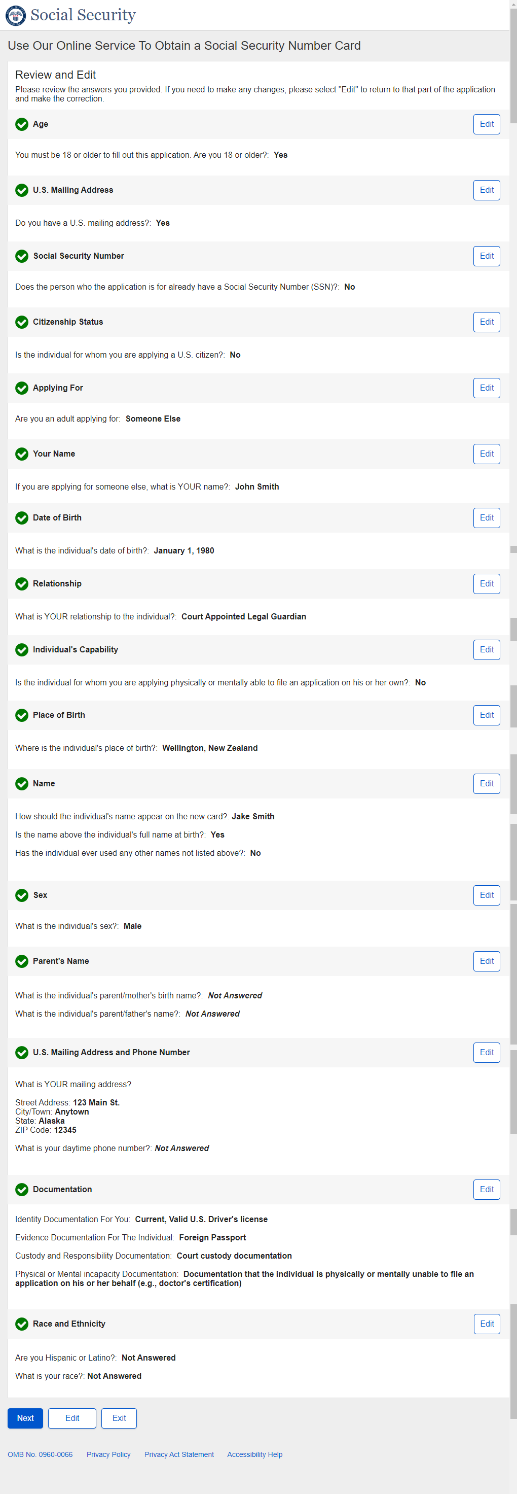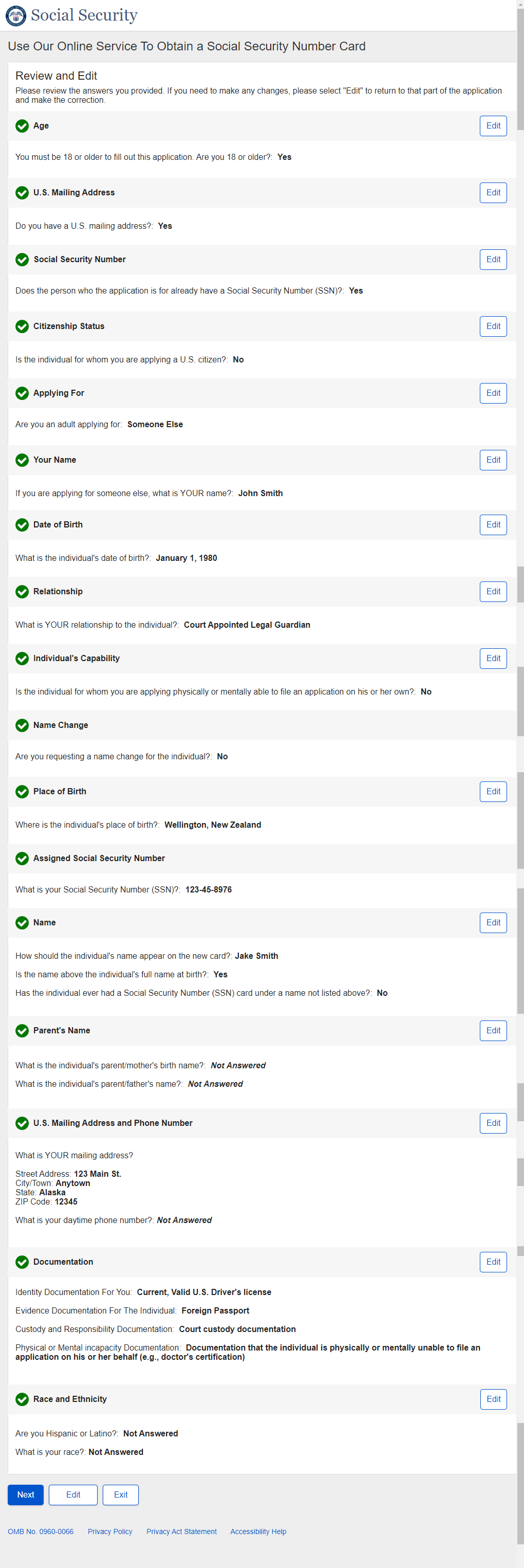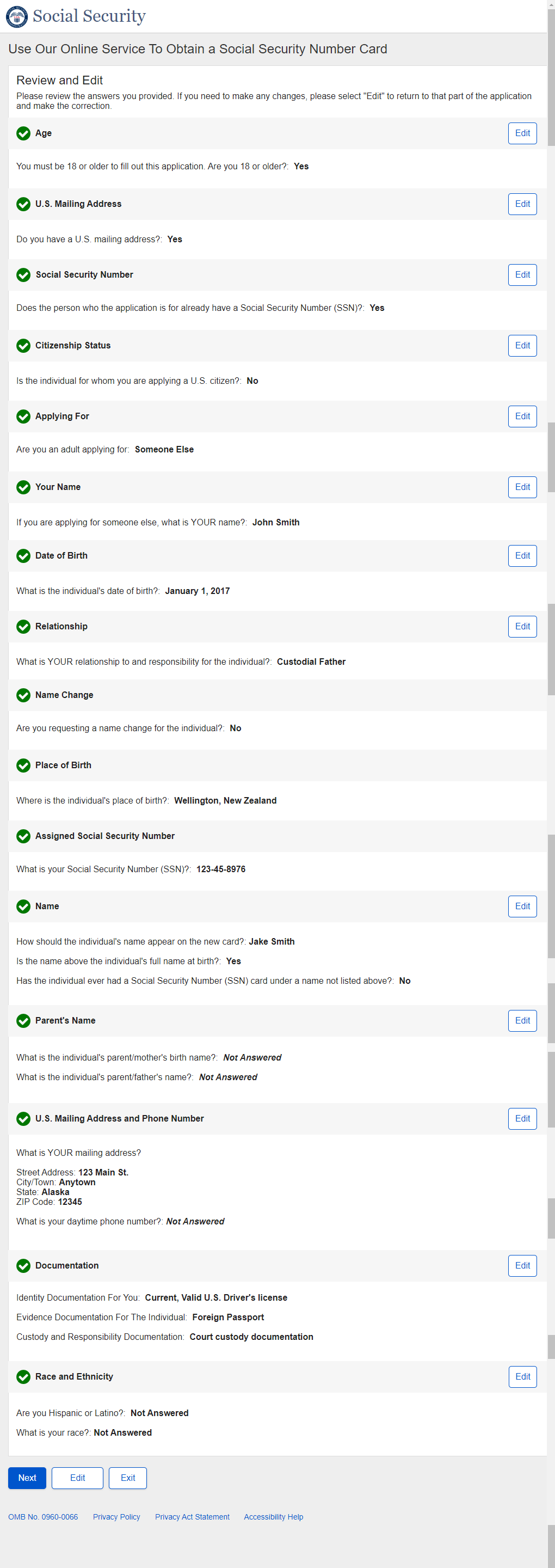 1. Non-U.S. Replacement Someone Else Adult - Individual's SSN