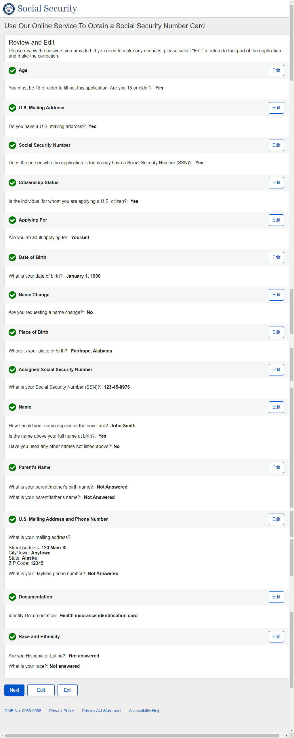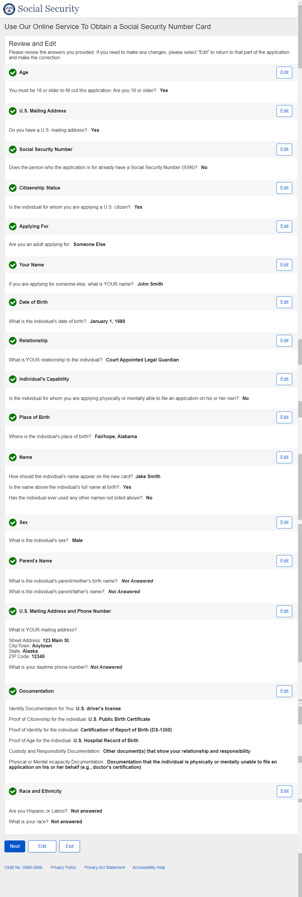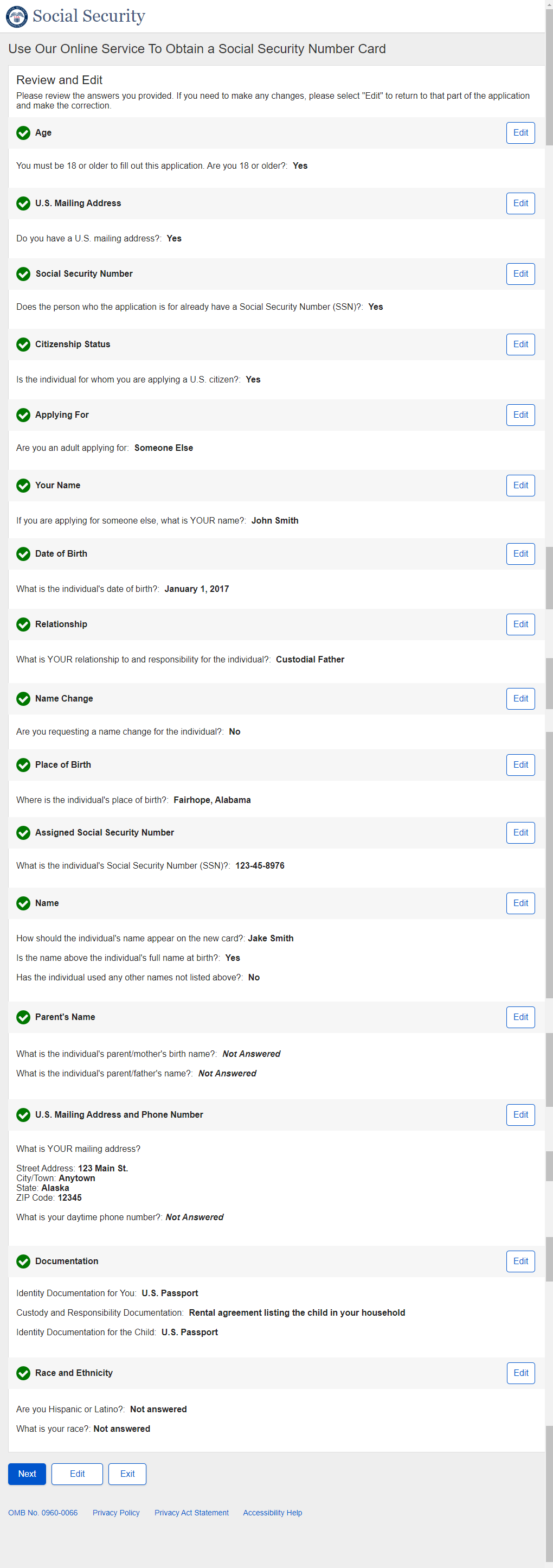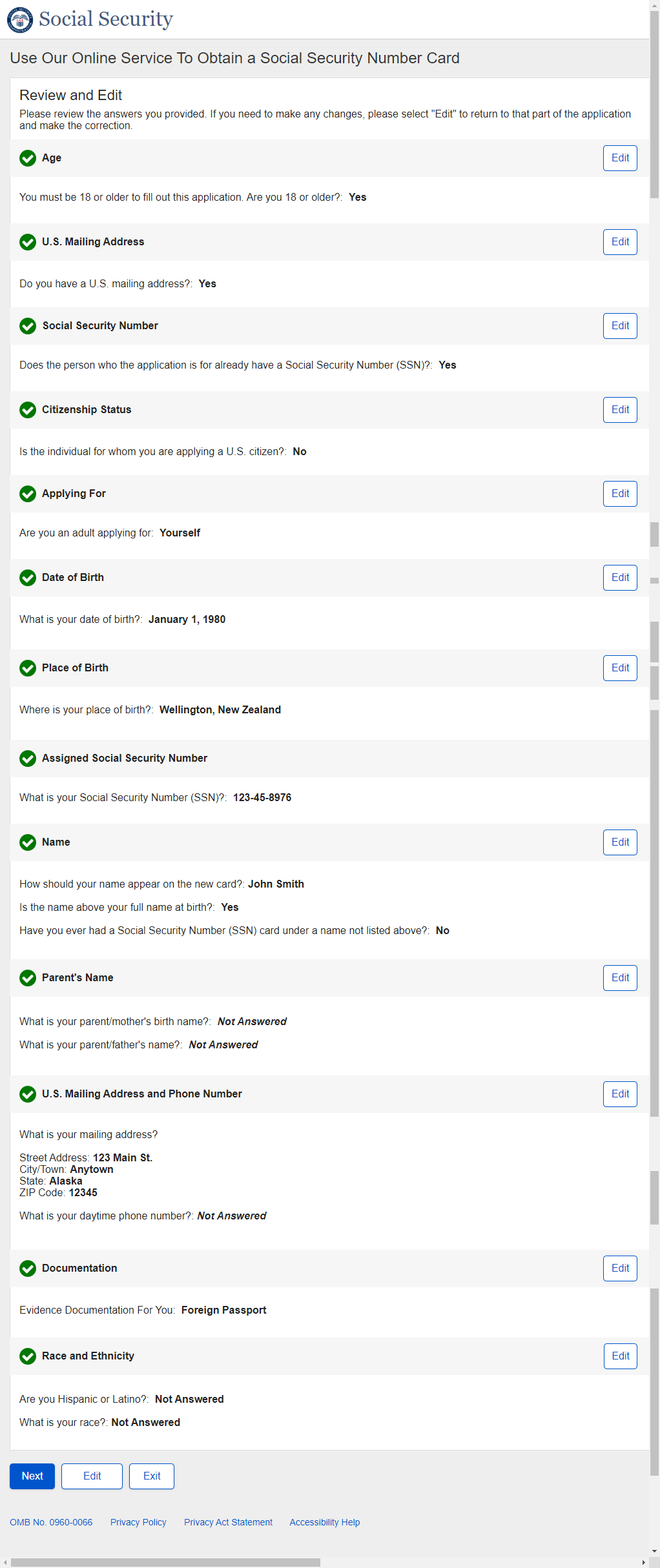1. Non-U.S. Replacement Someone Else Adult - Individual's SSN