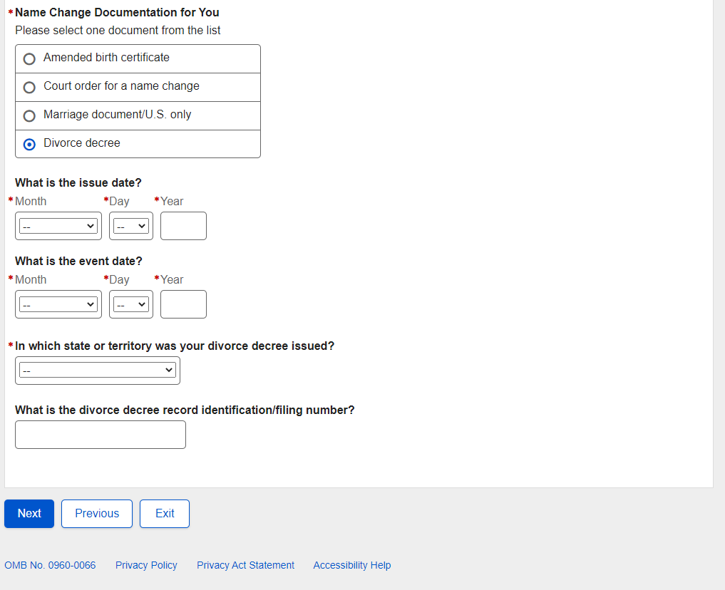1. Non-U.S. Replacement Someone Else Adult - Individual's Documentation - Name Change