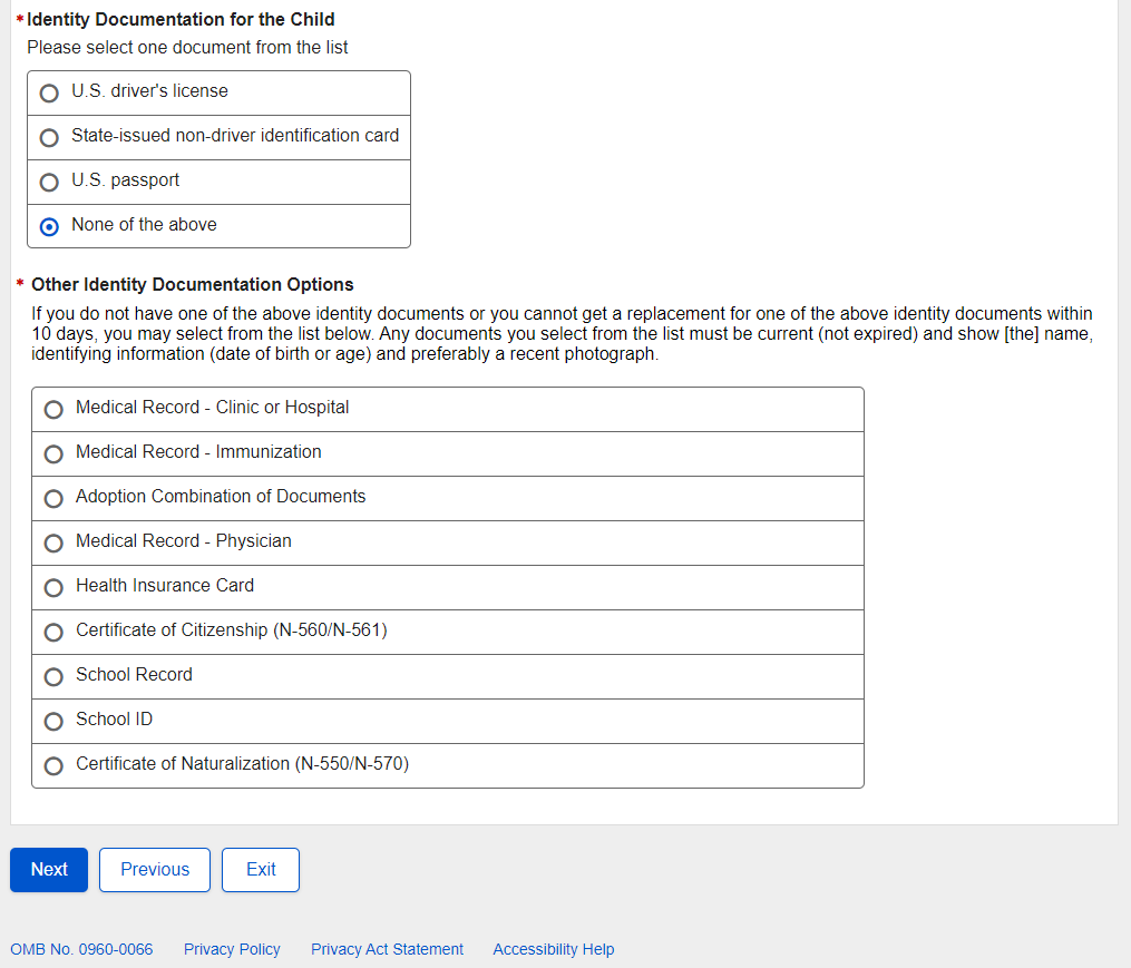 62. U.S. Original Someone Else Child – Proof of Identity for Child 117