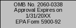The public reporting and recordkeeping burden for this collection of information is estimated to average 17 hours per response. Send comments on the Agency's need for this information, the accuracy of the provided burden estimates, and any suggested methods for minimizing respondent burden, including through the use of automated collection techniques to the Director, Collection Strategies Division, U.S. Environmental Protection Agency (2822T), 1200 Pennsylvania Ave., NW, Washington, D.C. 20460. Include the OMB control number in any correspondence. Do not send the completed Form 5900-92 to this address.