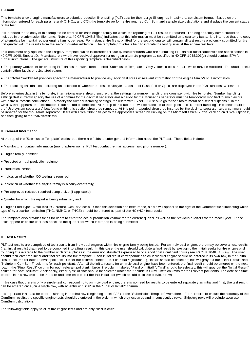 This collection of information is approved by OMB under the Paperwork Reduction Act, 44 U.S.C. 3501 et seq. (OMB Control No. 2060-0338). Responses to this collection of information are mandatory (40 CFR 1048). An agency may not conduct or sponsor, and a person is not required to respond to, a collection of information unless it displays a currently valid OMB control number. The public reporting and recordkeeping burden for this collection of information is estimated to be 12 hours per response. Send comments on the Agency’s need for this information, the accuracy of the provided burden estimates and any suggested methods for minimizing respondent burden to the Regulatory Support Division Director, U.S. Environmental Protection Agency (2821T), 1200 Pennsylvania Ave., NW, Washington, D.C. 20460. Include the OMB control number in any correspondence. Do not send the completed form to this address. |