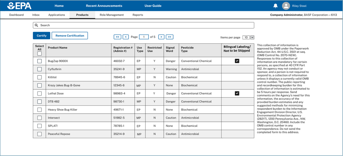 for certain persons, as specified at 40 CFR 152. An agency may not