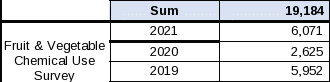 For the 2020 surveys, NASS utilized phone enumeration and computer assisted web interviews when possible for all surveys, which may have affected response. This was due to the need for social distancing during the pandemic. Field enumeration of the phase 2 and chemical use surveys will resume when it is safe to do so as determined by NASS and the National Association of State Departments of Agriculture (NASDA).