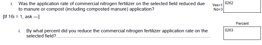 To: “Were the manure or compost (including composted manure) application rates to the selected field influenced by Federal, State, or local restrictions?”