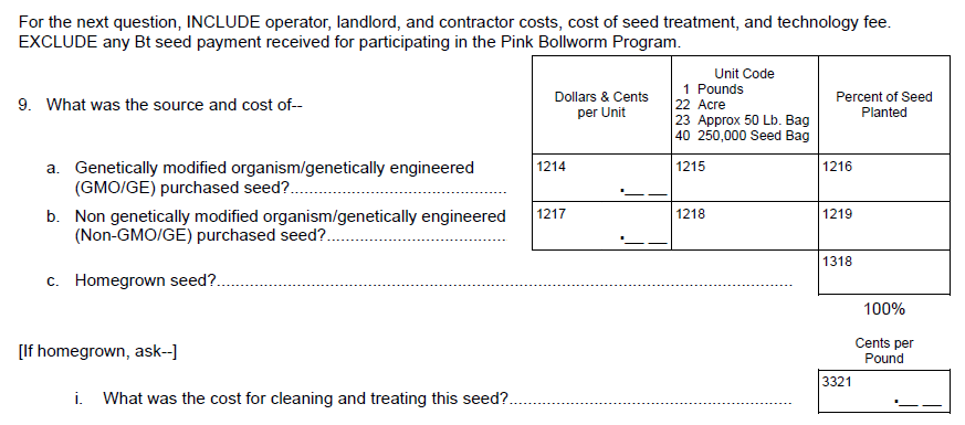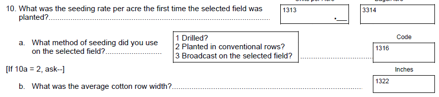 NEW Question 9: “Was the cotton harvested and hauled from the selected field dried (or will be dried) before it was sold or stored?” {y/n}