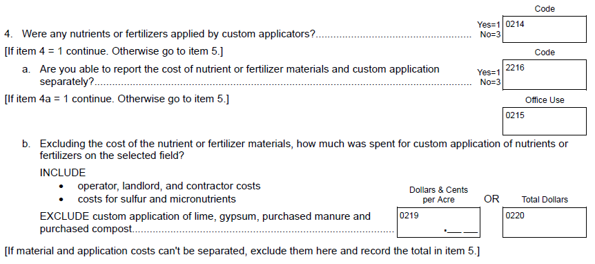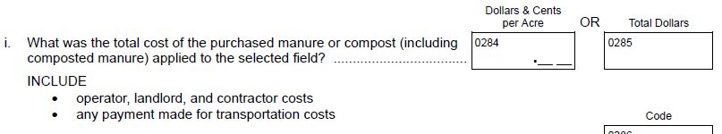 NEW Question 4c: “How much was spent for fungicide products applied to the selected field? INCLUDE operator, landlord, and contractor costs”