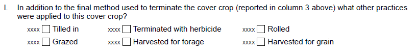 Question 11 Table “Was field scouted for” – Removed.