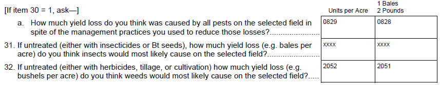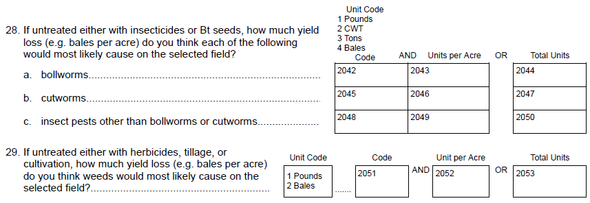 Question 9a “Measure damage from budworm & bollworm” – Removed.