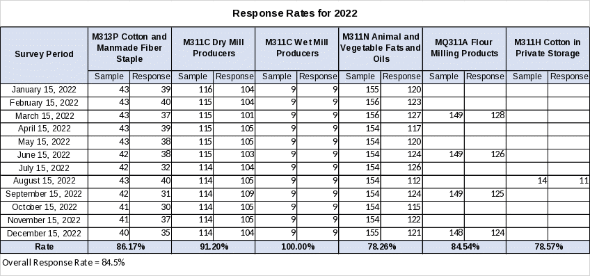 The samples and survey data are reviewed by NASS Summary, Estimation, and Disclosure Methodology Branch, Methodology Division. The Branch Chief is Jeff Bailey, (202) 690-8141.