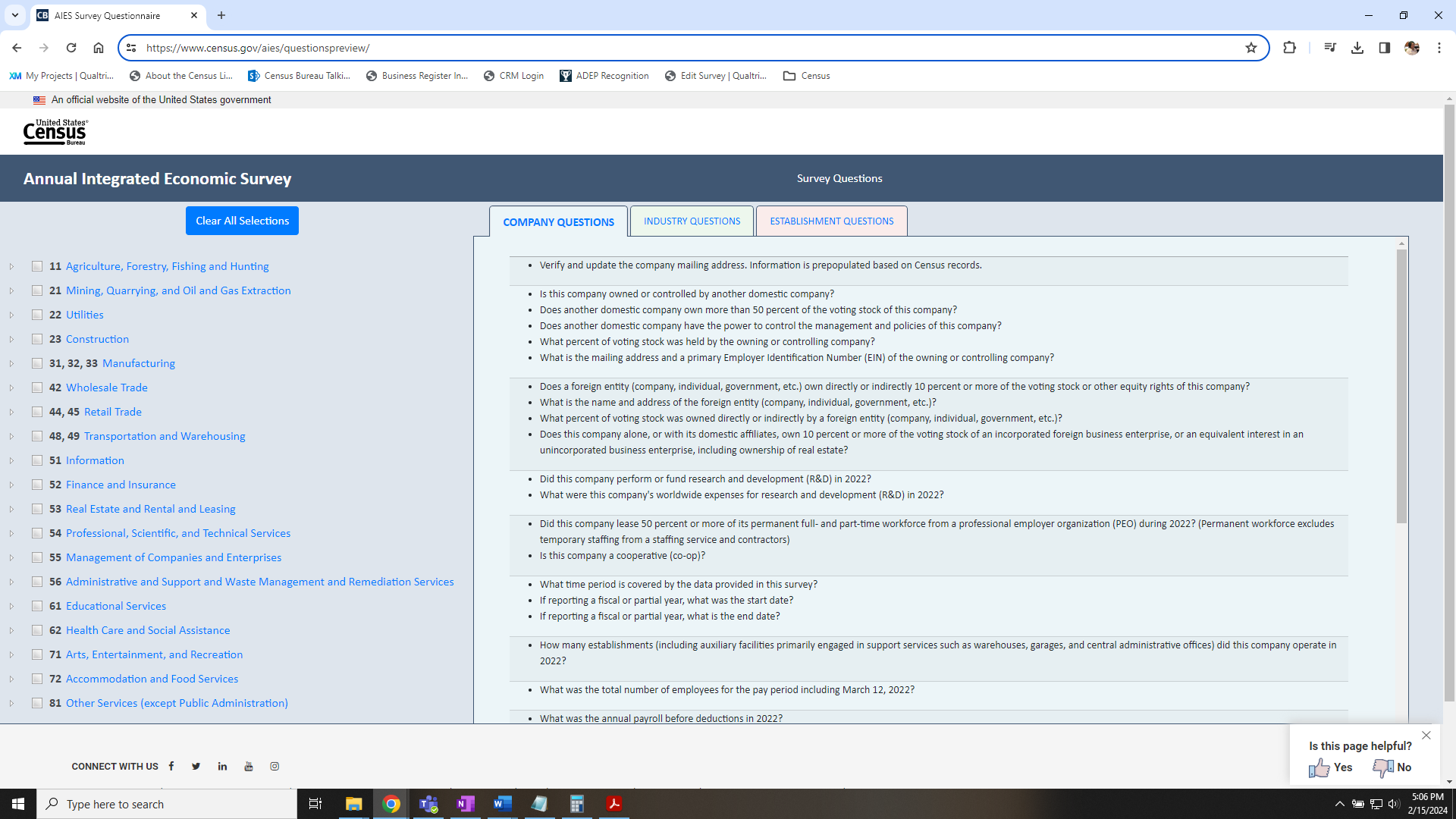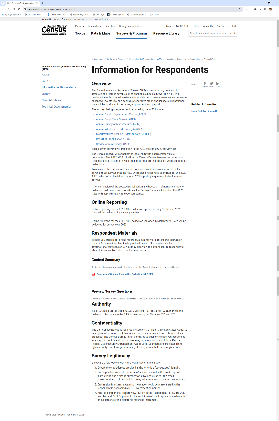 As part of the research effort for improving AIES, the Census Bureau contracted RTI International and Whirlwind Technologies, LLC, to conduct debriefing interviews with the respondents who completed the AIES web instrument to assess the clarity, effectiveness, and usability of the first AIES instrument launched in March 2024. From the interview feedback, the project team was able to assess these research questions and gather comments about the respondent-facing communication materials to provide relevant recommendations.