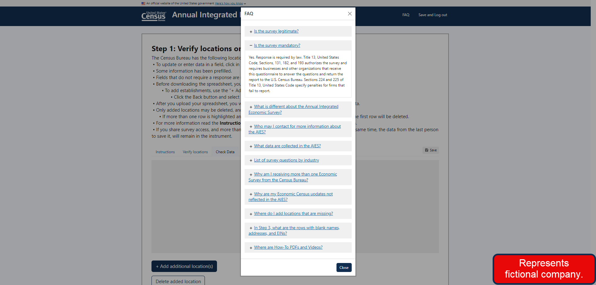 A few participants noted that the barrier to response is in a mismatch between the units on the survey and the way the company keeps its records. This mismatch is echoed on other establishment surveys but is particularly acute on the AIES because of the integrated three-unit model (company, establishment, and industry). Said one, “instead of me filling out [more than 15] stores, if it is the same company and the same [tax ID why can’t I] fill out a consolidated [survey] for the company? In my case I only have one [tax ID] with [more than 15] stores, it is difficult to fill out.” Said another, “The survey should be consolidated by its locations.”