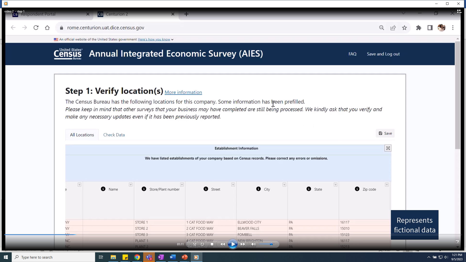 Video 2: Step 1 – introduced the first step of the survey, updating lists of locations, including how to add missing locations, indicating operating status, and answering follow-up questions as driven by the instrument.
