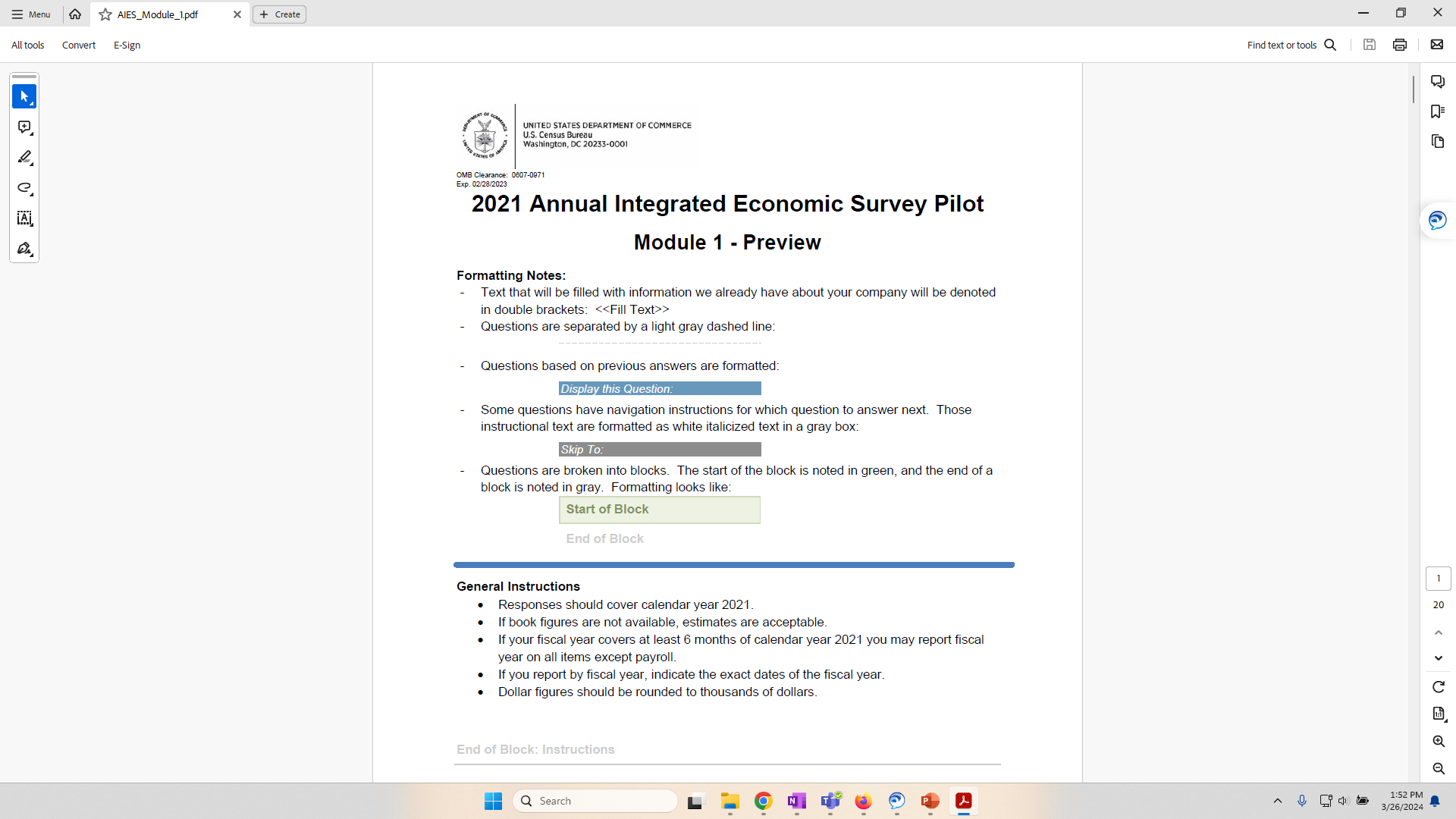 Great, thanks for that context. Next I’ll have you open the interactive question preview tool link, AIES Survey Questionnaire (census.gov), I sent to you and walk you through how to screenshare. You make take a moment to close anything you don’t need open.